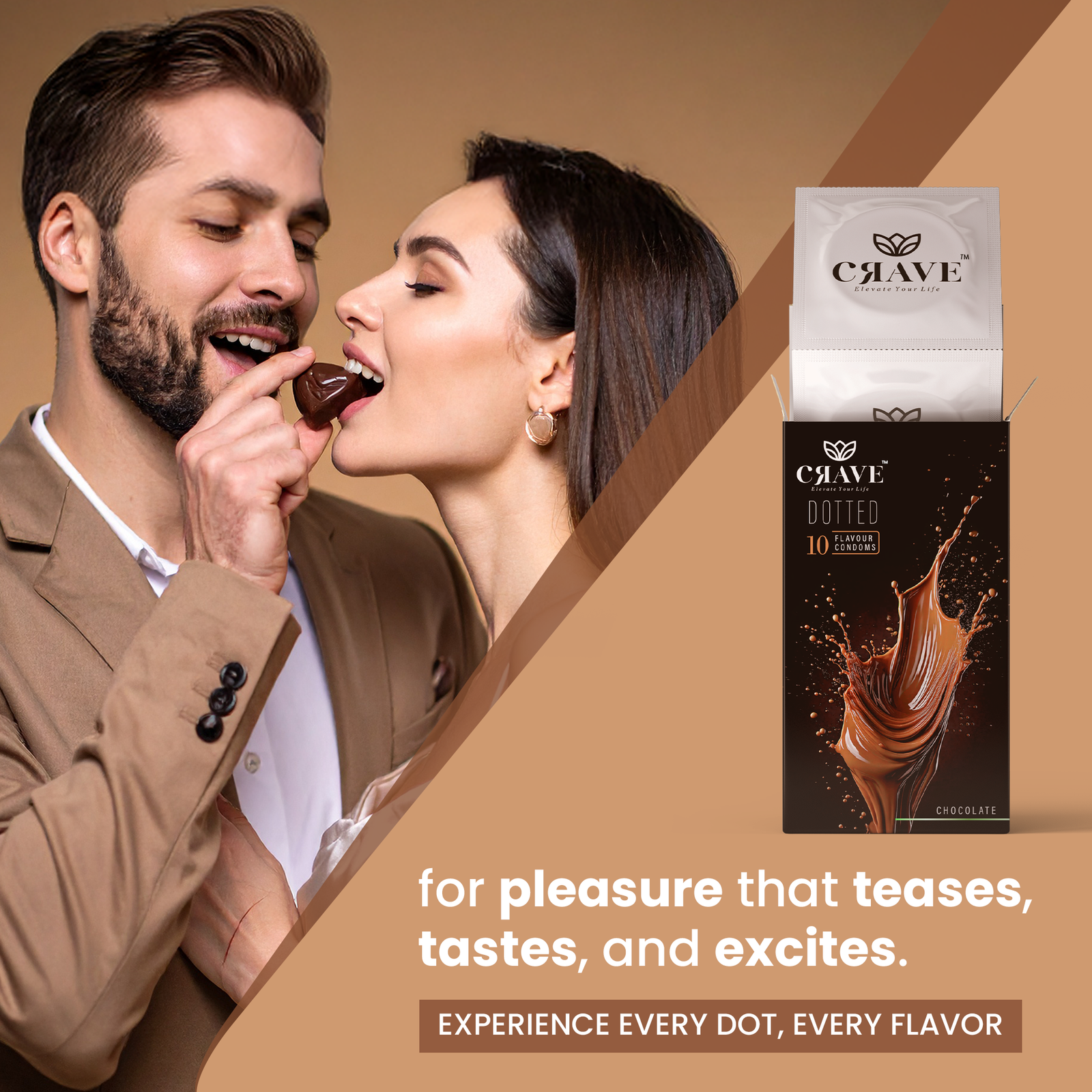 Crave Chocolate Dotted Condom | Flavored, Lubricated, Electronically Tested | Single-Use, Premium Latex for Enhanced Pleasure