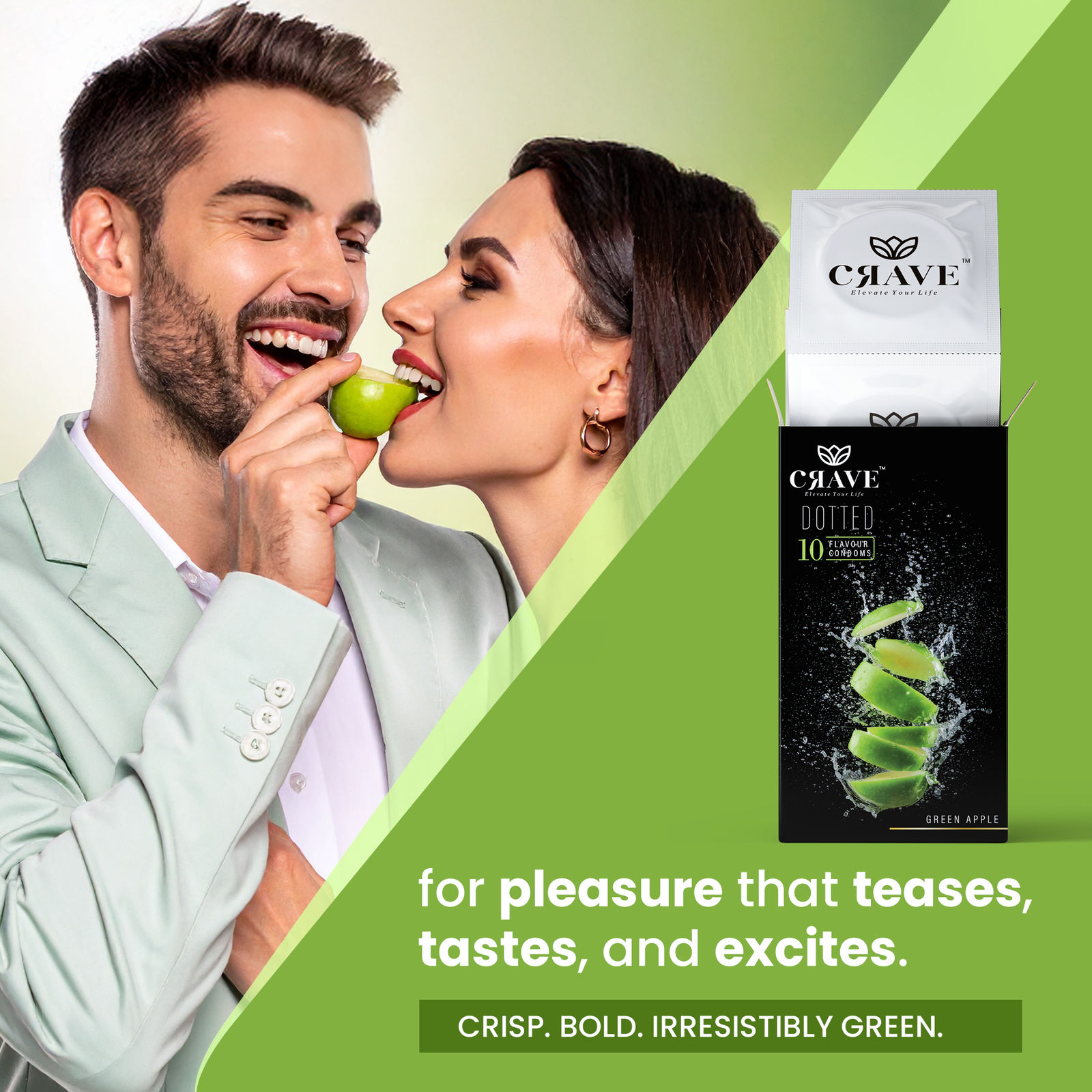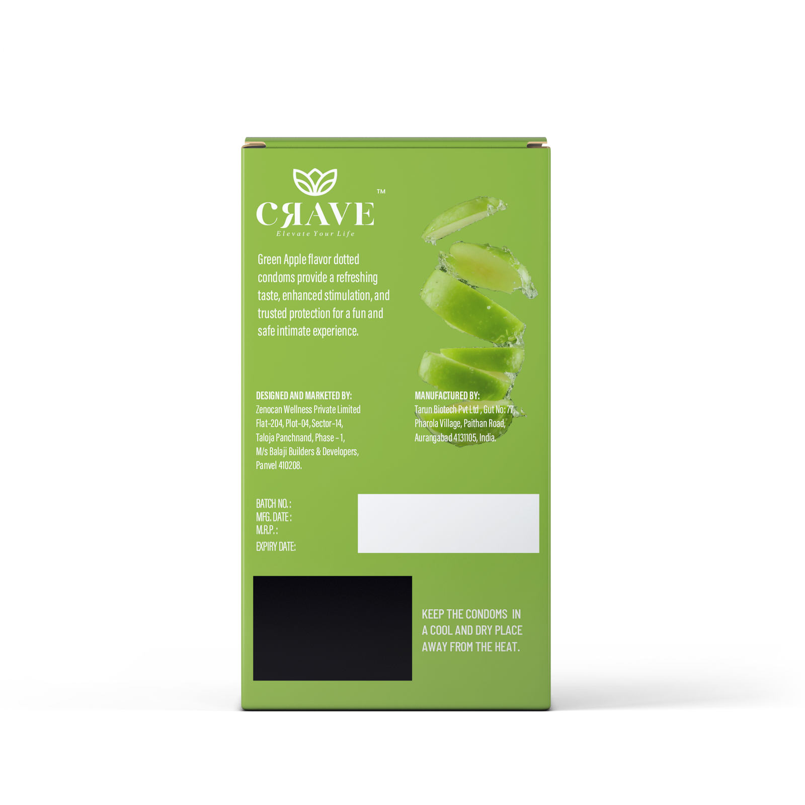 Crave Green Apple Dotted Condom | Flavored, Lubricated, Electronically Tested | Single-Use Latex Condom for Enhanced Pleasure